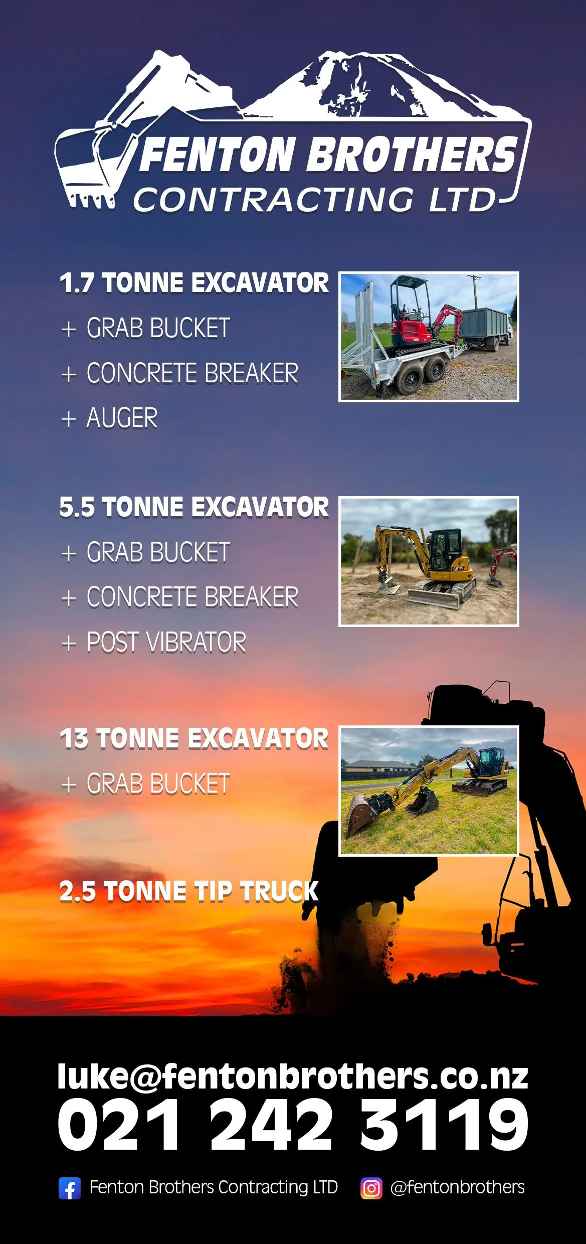 Fenton Brothers Contracting LTD provides professional earthmoving and contracting services across Whakatane and the wider Bay of Plenty. With 20 + years of combined experience, the team delivers high-quality workmanship and reliable service on every project.
